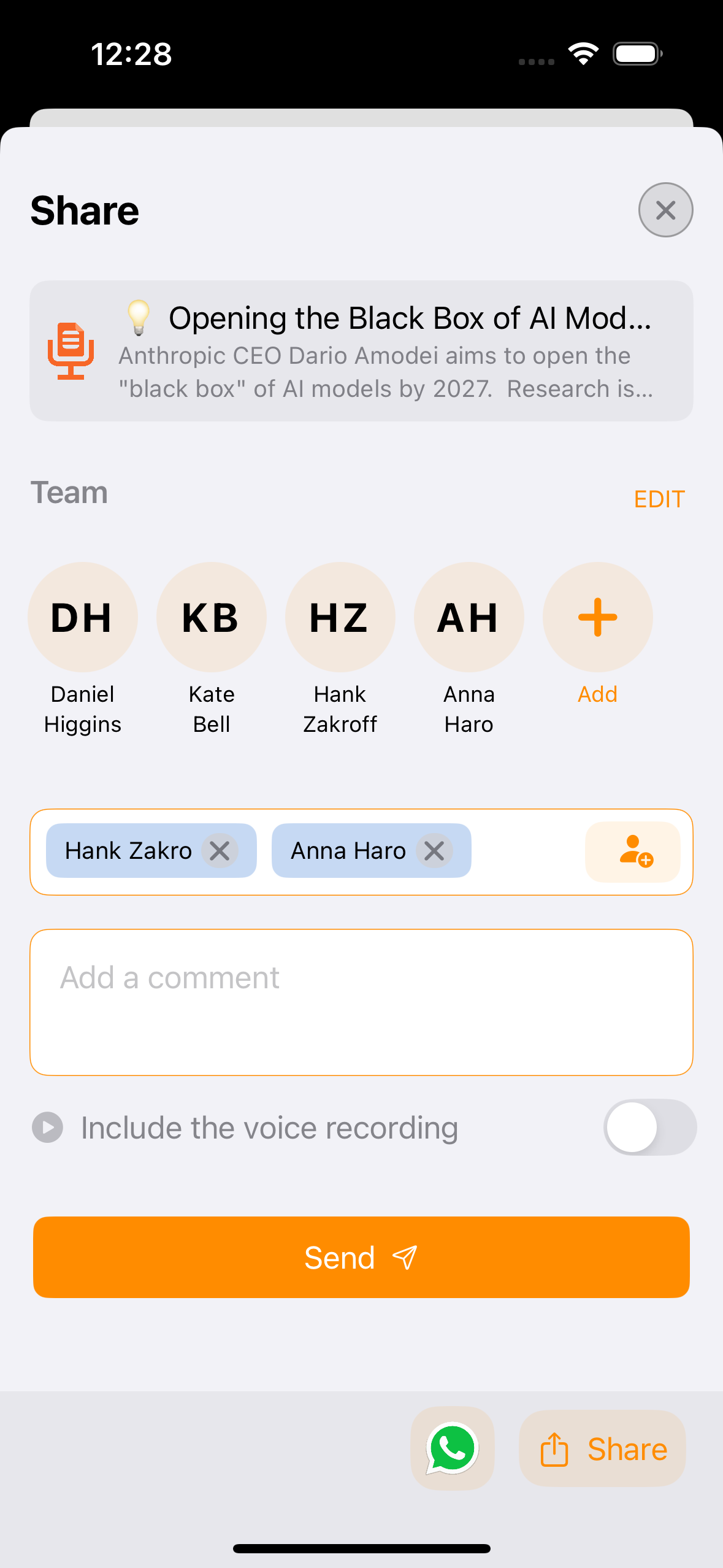 Ideas, tasks, meeting summaries… share everything with your team instantly and effortlessly using your voice. Additionally, NoteMail will notify you when your messages have been received and read.
